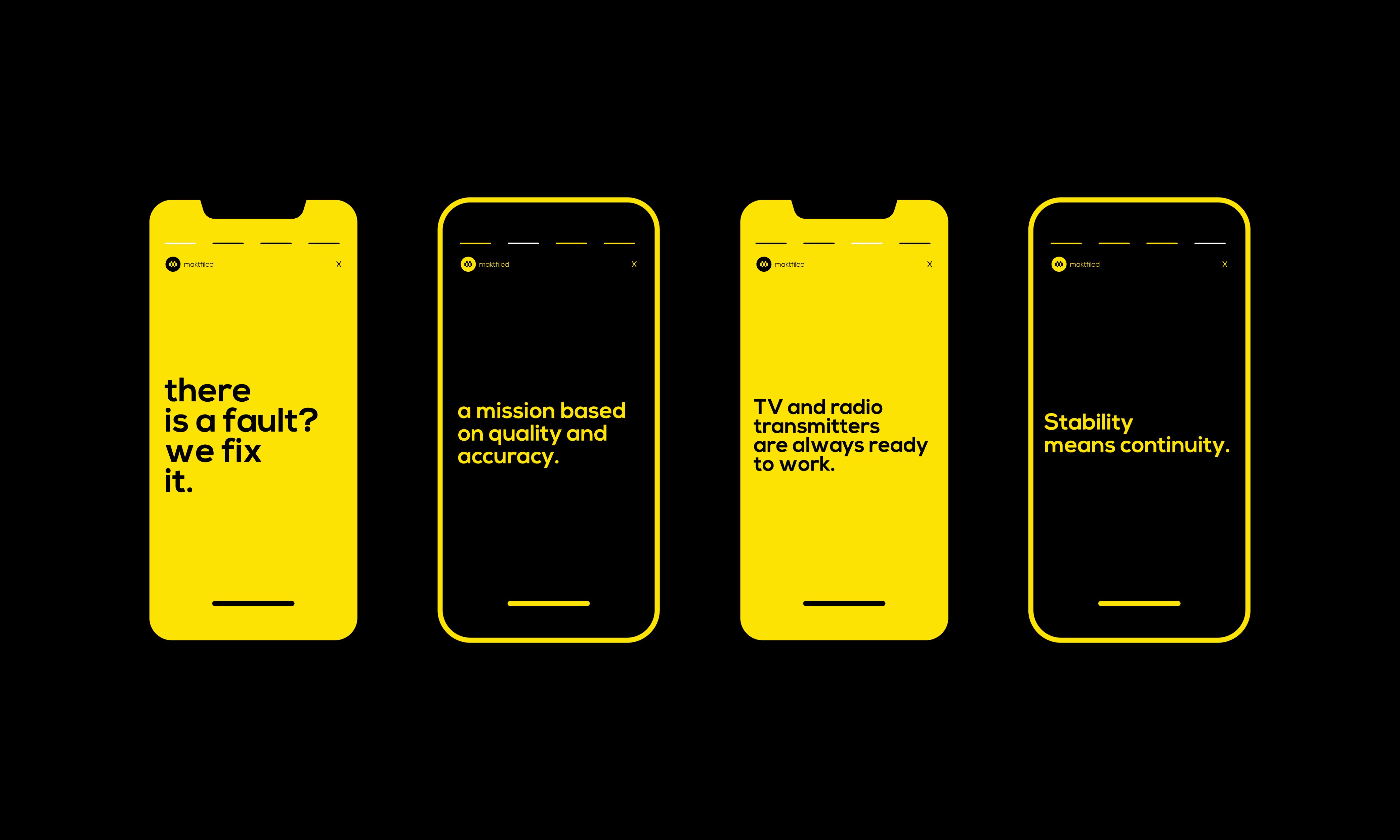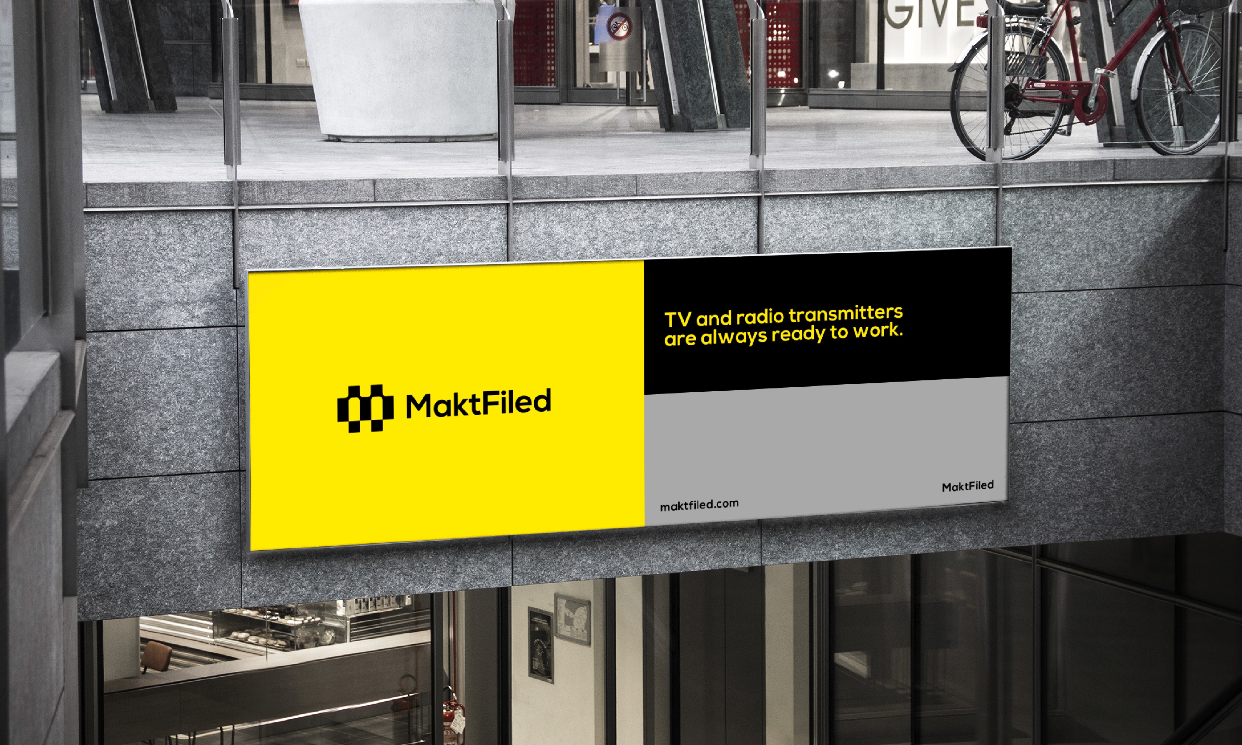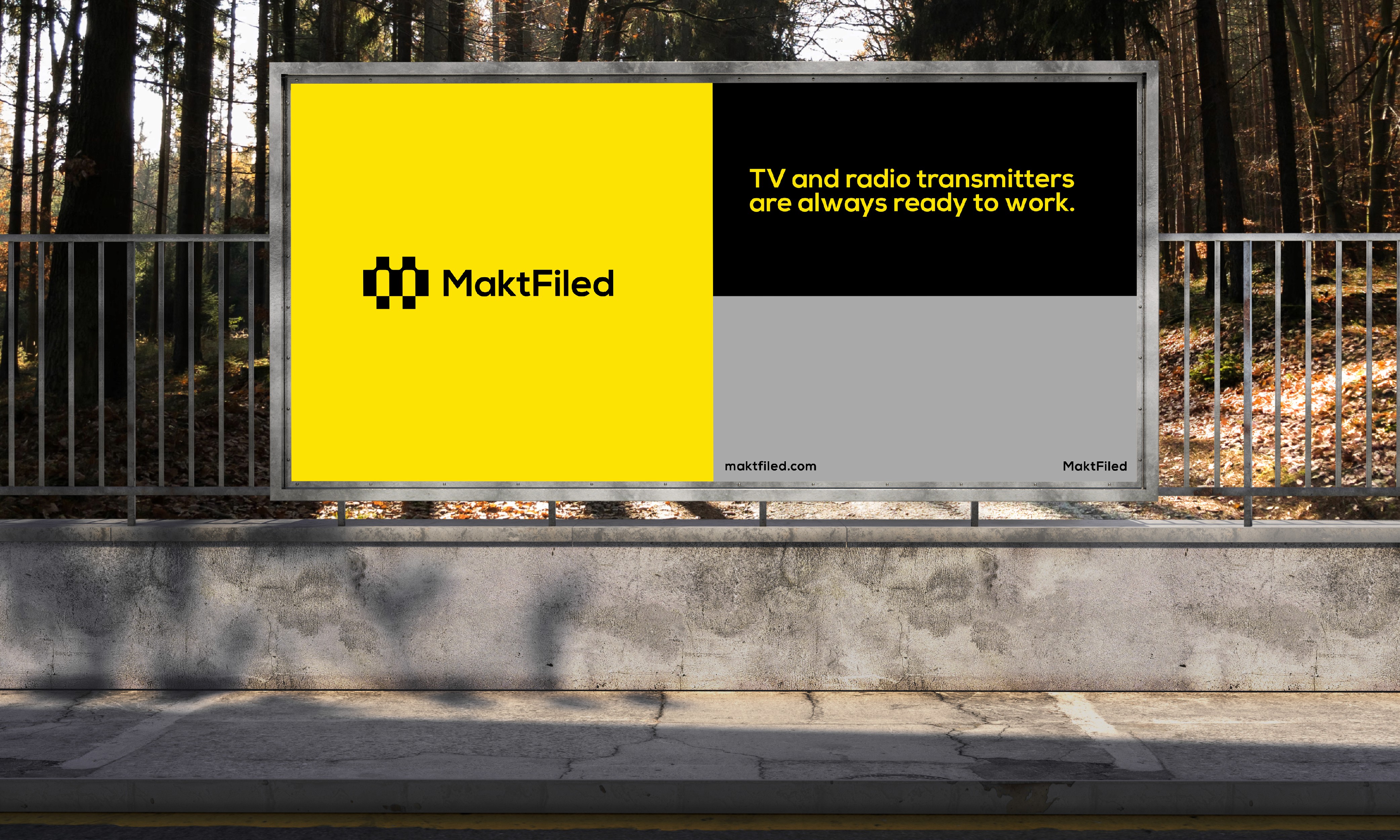 The new brand identity was designed to translate MaktFiled’s technical mastery into a bold, modern visual system. Inspired by the concepts of connectivity and precision, the logo combines geometric structure with dynamic balance, reflecting the company’s mission to keep transmission networks seamlessly connected. The vibrant yellow background projects energy and visibility, while the black symbol anchors the brand in trust and stability. Together, these elements create a visual identity that embodies MaktFiled’s reliability, responsiveness, and forward thinking spirit, positioning it as a leader in broadcast technical services across Europe.