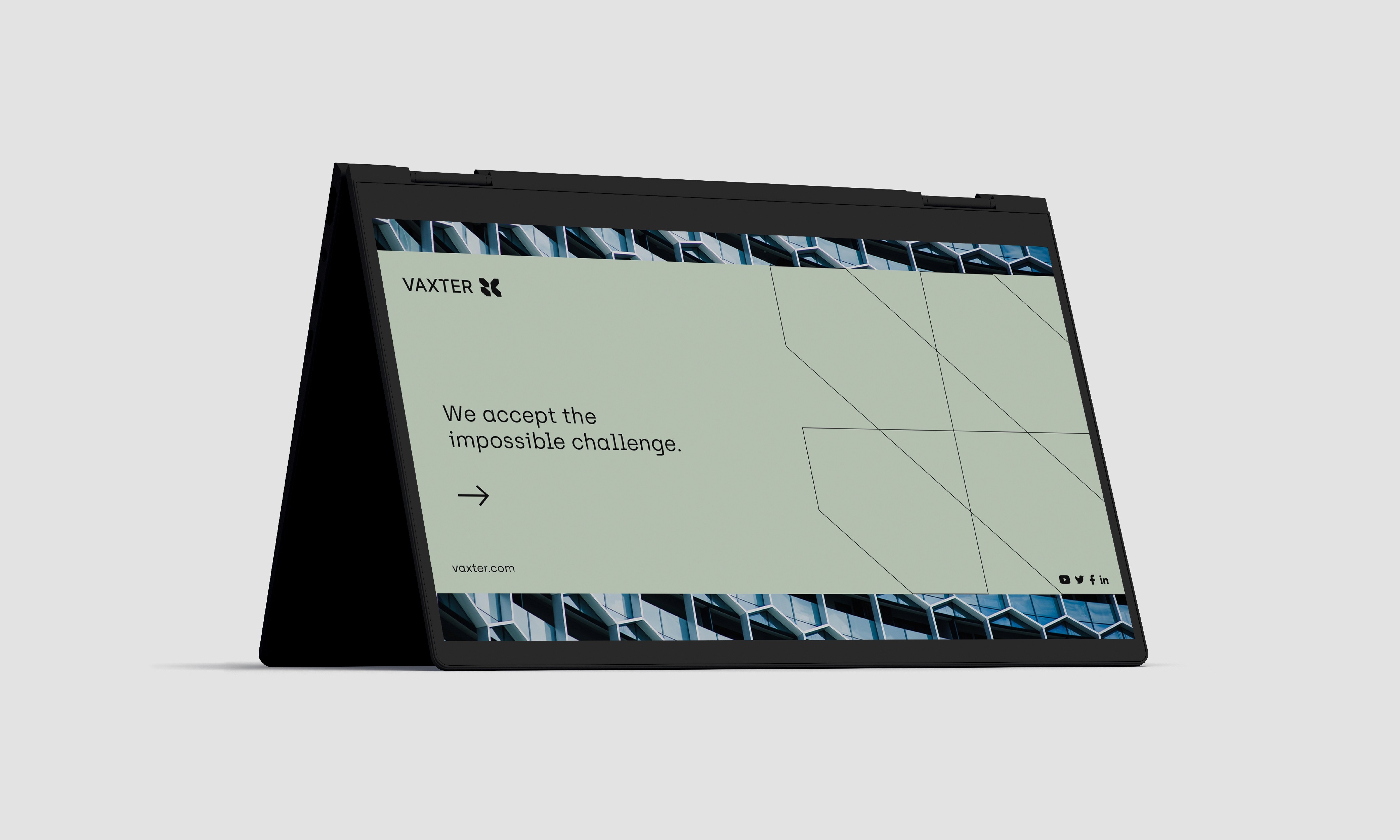 The new identity was designed to embody geometry, harmony, and modern minimalism, expressing the studio’s refined yet bold approach to architecture. The logo’s geometric composition conveys structure and precision, while its subtle motion and symmetry represent innovation and balance. The visual language was developed to reflect professionalism and trust, yet remain distinctly modern and forward-looking just like Vaxter’s designs. The result is an identity that seamlessly communicates the studio’s vision: shaping the future of architecture through intelligent design and creative clarity.