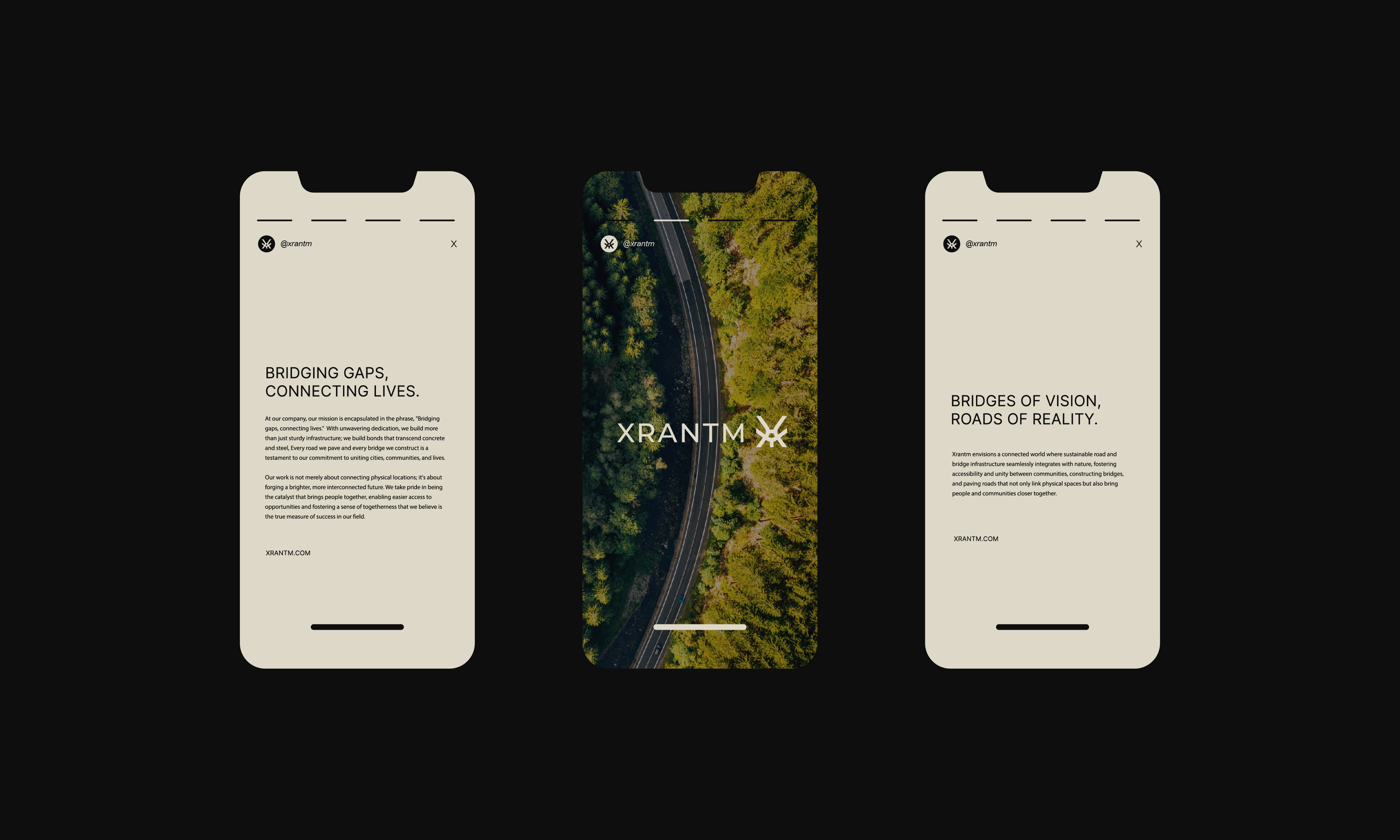 Xrantm needed a brand identity that could capture the essence of modern engineering while remaining true to its deep respect for nature. The challenge was to communicate professionalism, innovation, and sustainability in one unified visual language. In an industry often defined by rigidity and industrial aesthetics, Xrantm sought a distinctive identity that reflected its vision for a connected, sustainable future, one where infrastructure seamlessly integrates with the natural environment rather than overpowering it.