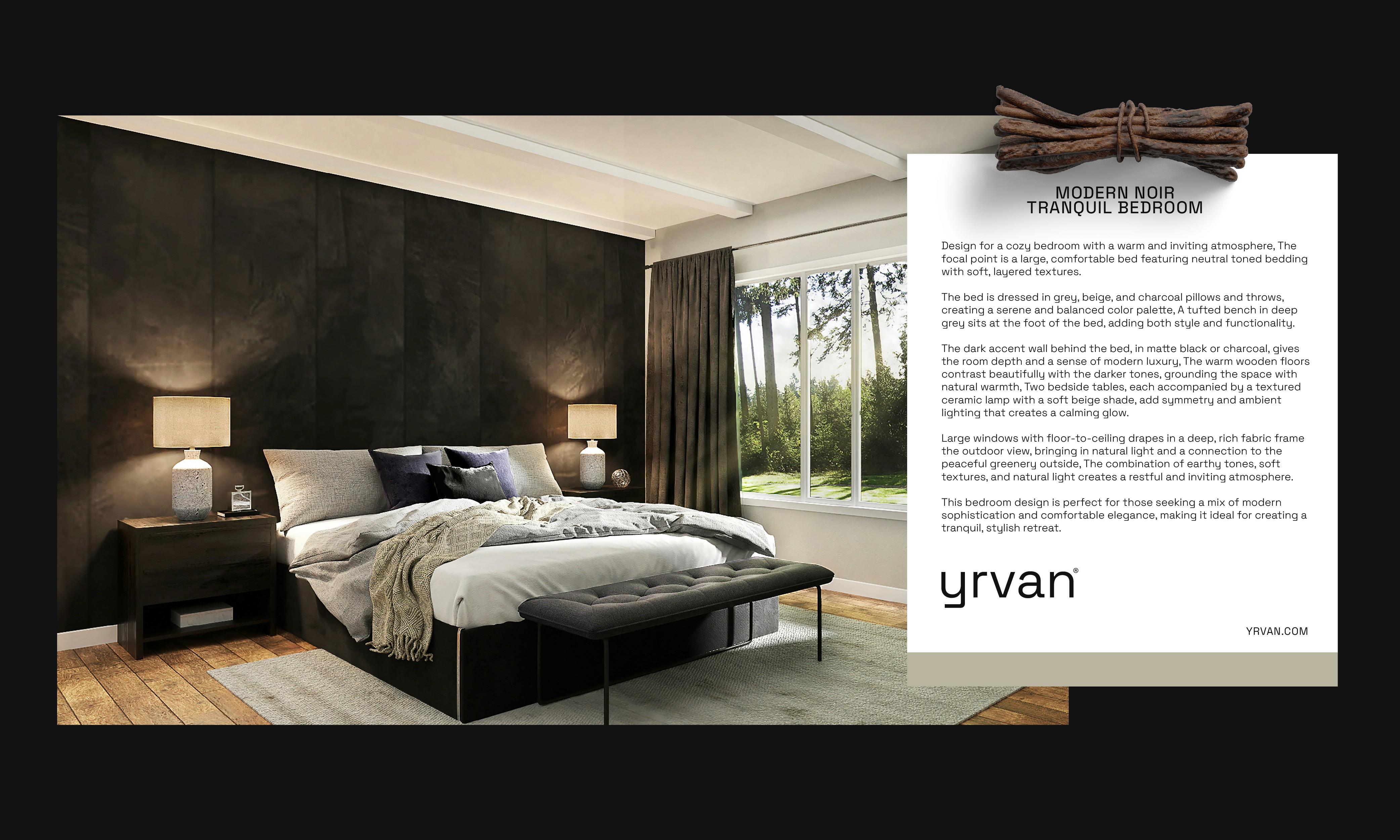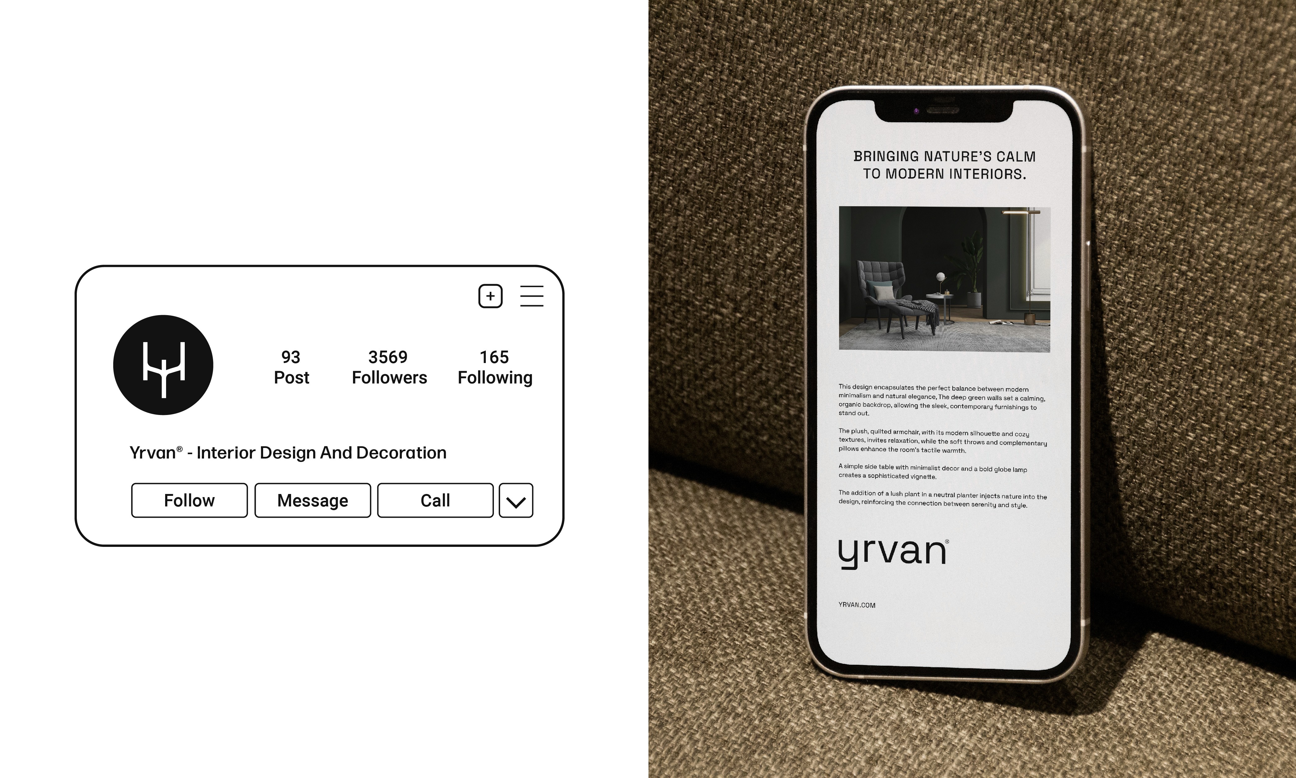 Yrvan, as a modern interior design studio, needed a brand identity that could visually capture its refined philosophy, one that merges contemporary sophistication with the organic warmth of nature. The challenge was to create an identity that feels minimal yet expressive, modern yet timeless. The brand needed to stand out in the competitive design industry by communicating trust, elegance, and creativity while staying true to its core belief: that spaces should evoke emotion and tell personal stories, not just fulfill function.